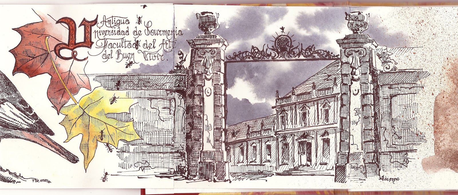 5. Os felicito a los dos, Orumo y Manuel, por la suerte y por los grandes trabajos. Magníficas los temas, el dibujo y las texturas de gravado y genial la rotulación y el texto de los dibujos. Y de la acuarela que te voy a decir, además de lo fantástica que resulta.