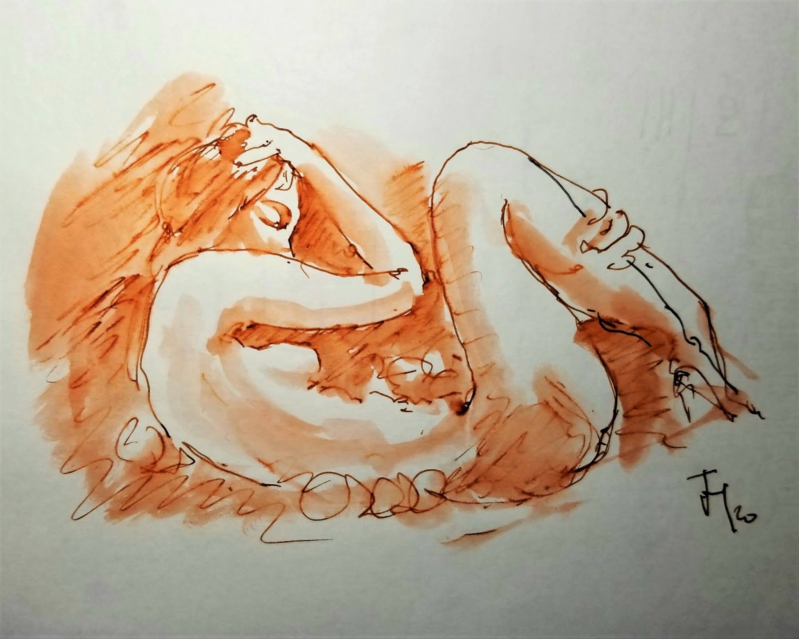 Finalmente, unas clases de figura de desnudos que ella imparte en diversas academias. Están hechas a base de pluma estilográfica y tintas de distintos colores.