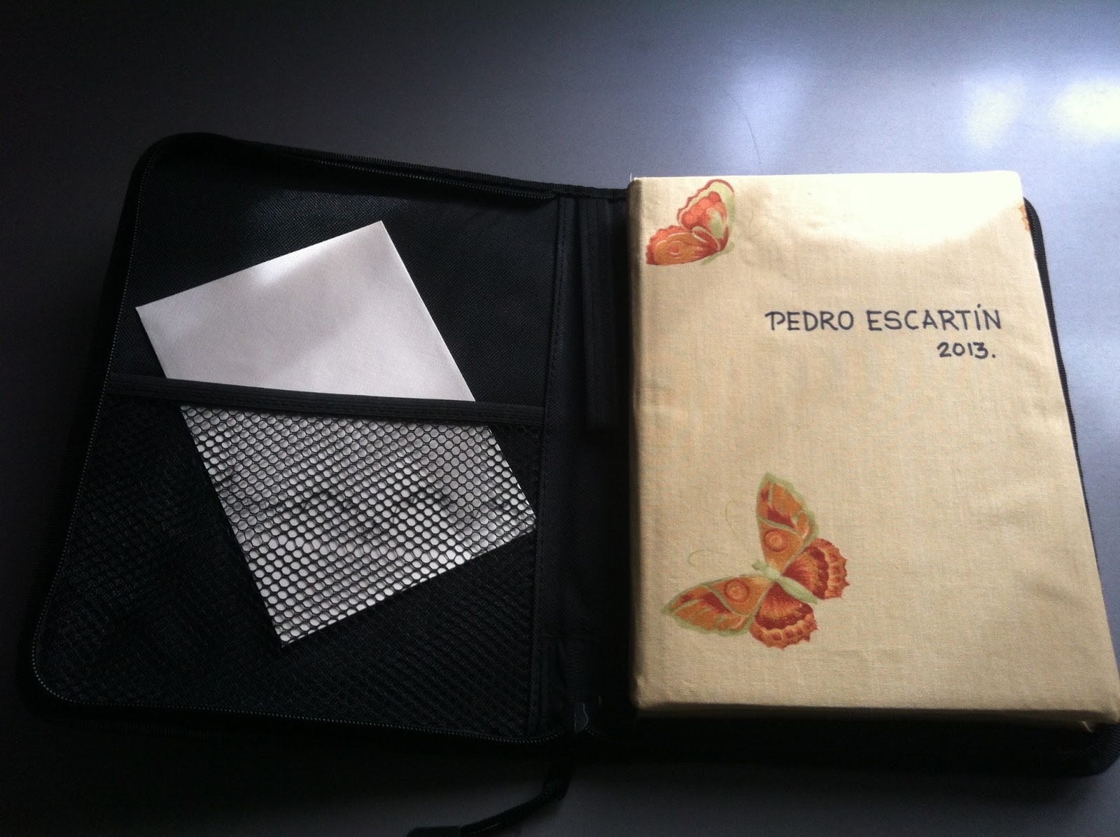 Una vez leído el escrito, abro mi flamante cuaderno y la portada ya es deliciosa